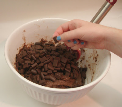 Stir in all the chocolate chunks that are left after the bowl is raided by monkeys.