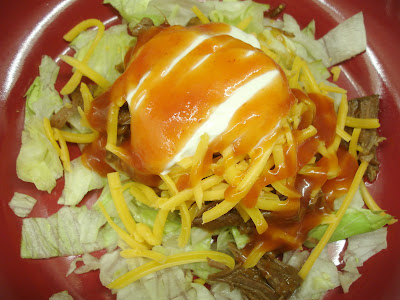 I go for the salad every time and like to drizzle it with Catalina dressing. With a ton of sour cream. Yum!!!